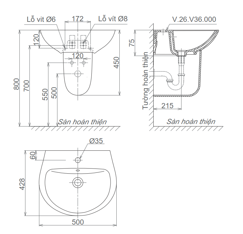 Chậu + chân treo tường (BB, Bulông, ốc vít) V36