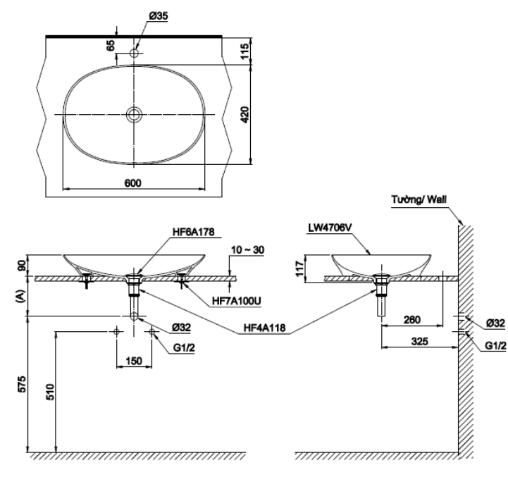 Chậu đặt trên bàn , Chất liệu Linear Ceram - Viền chậu siêu mỏng 4mm