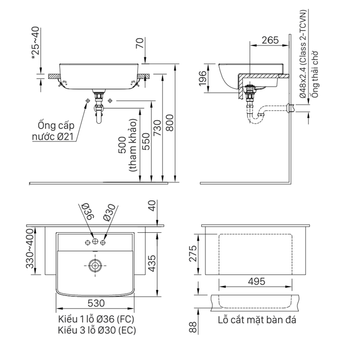 Chậu rửa bán âm bàn-AL-345VEC/BW1