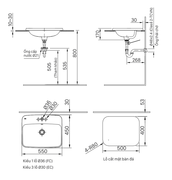 Lavabo Đặt Trên Bàn ( bao gồm trụ xả nắp sứ ) - LF5254