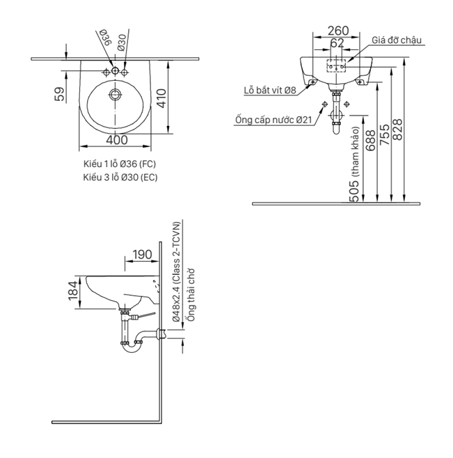 Chậu rửa treo tường-L-282VFC/BW1