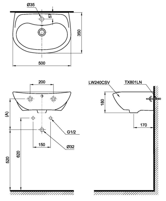 Chậu treo tường , Kích thước: L350 x W500 x H180 (mm)