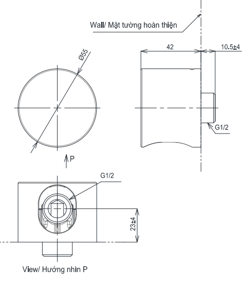 Bệ tiểu nam treo tường - đường nước cấp phía sau