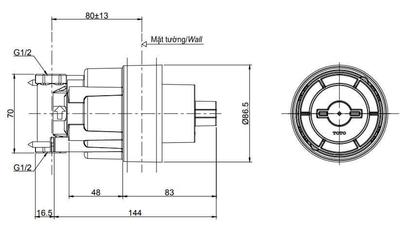Phụ kiện âm tường cho van chuyển hướng (2 đường nước ra)