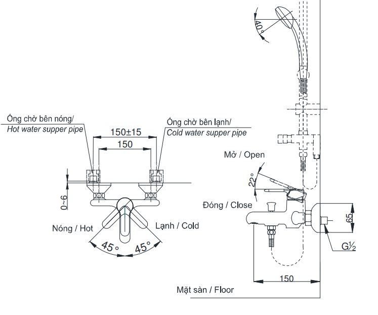 Sen tắm nóng lạnh kèm bộ phận kết nối với thân sen , Đã bao gồm van một chiều