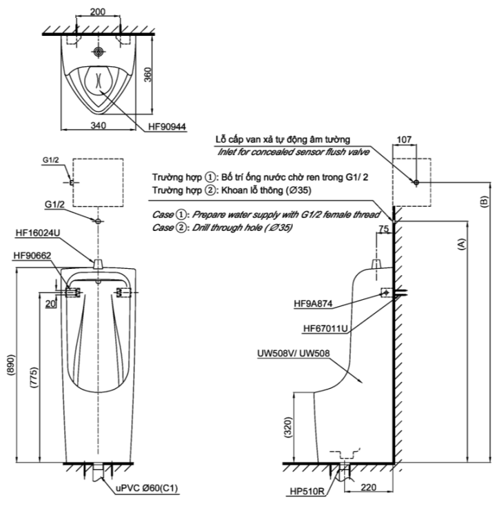 Tiểu nam đặt sàn (Đường cấp nước phía trên) , Men sứ chống dính CeFiONtect