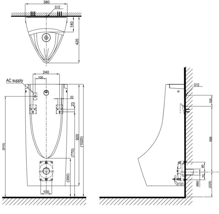 Tiểu nam treo tường kèm van cảm ứng tự động (dùng điện 220V) , Men sứ chống dính CeFiONtect