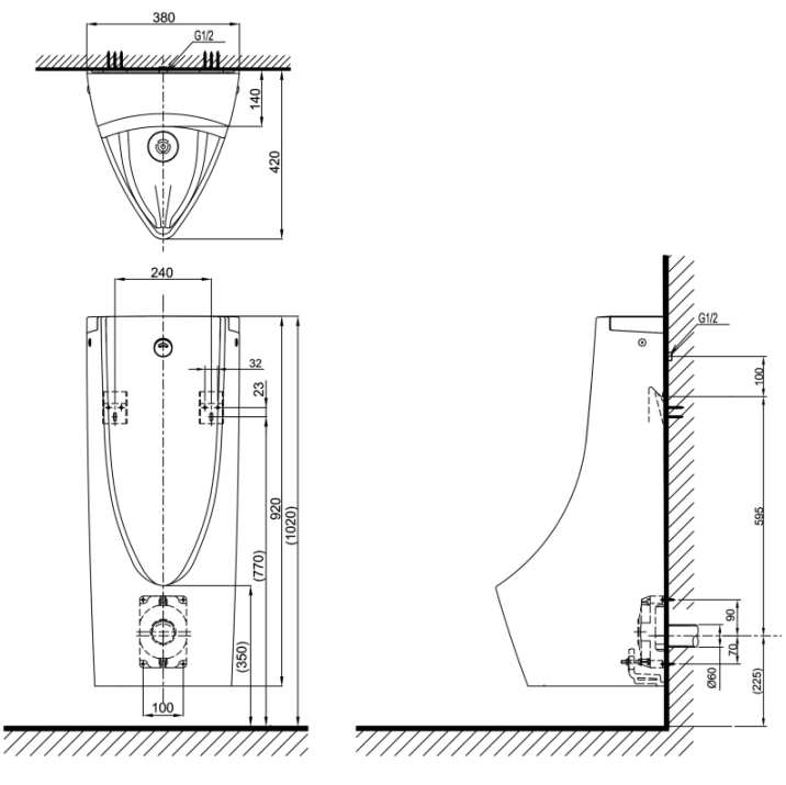 Tiểu nam treo tường kèm van cảm ứng tự động (dùng pin) , Men sứ chống dính CeFiONtect