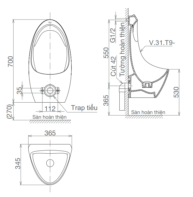 Tiểu nam treo tường (Nano Titan, BB, PK) T9 (Cấp dương)