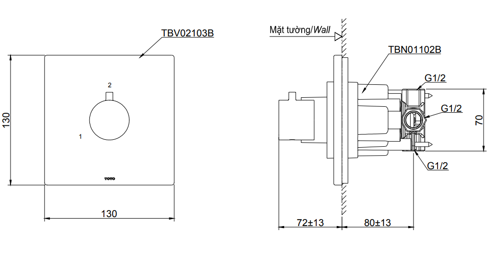 Van chuyển hướng (2 đường nước ra) kèm phụ kiện âm tường, không kèm van dừng