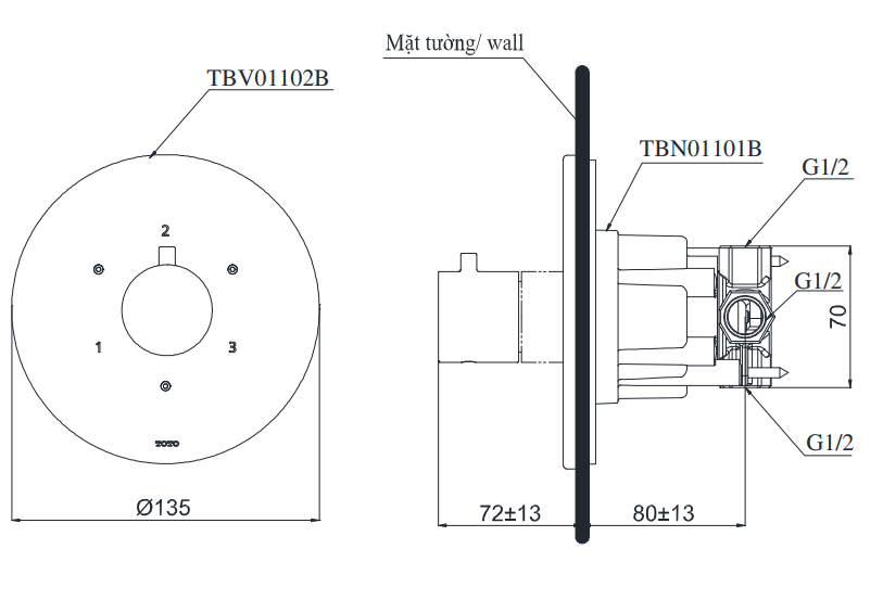 Tổ hợp sen âm tường GLOBAL FITTINGS dáng tròn , 3 đường nước