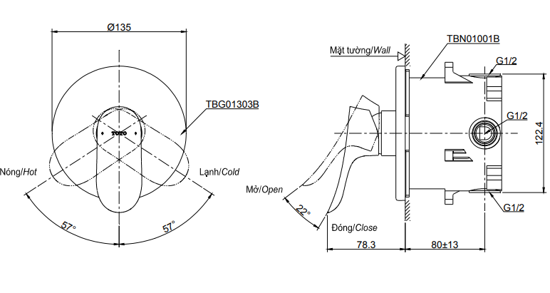 Van gật gù điều chỉnh nóng lạnh GO kèm phụ kiện âm tường