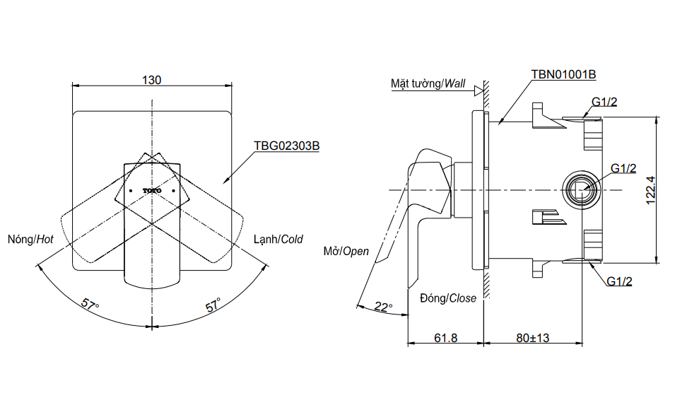 Van gật gù điều chỉnh nóng lạnh GR kèm phụ kiện âm tường