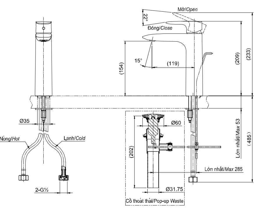 Vòi chậu gật gù nóng lạnh GA , (Dành cho chậu đặt trên bàn)