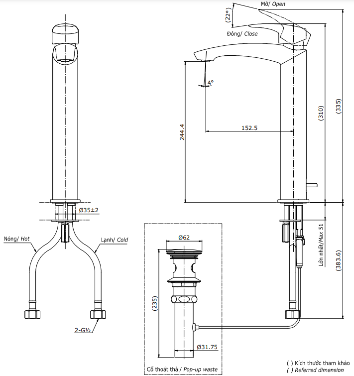 Vòi chậu gật gù nóng lạnh GM , (Dành cho chậu đặt trên bàn)