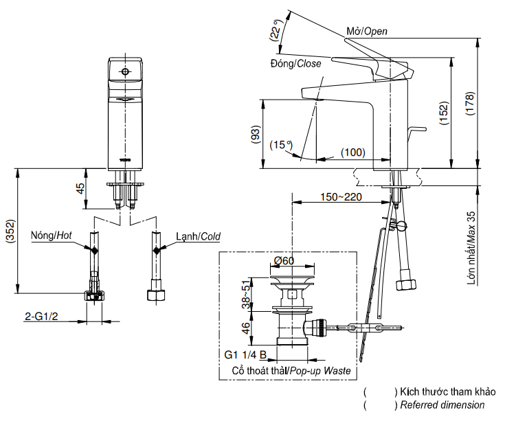 Vòi xả bồn nóng lạnh LB (3 lỗ) , Mã cũ: TBS01201B
