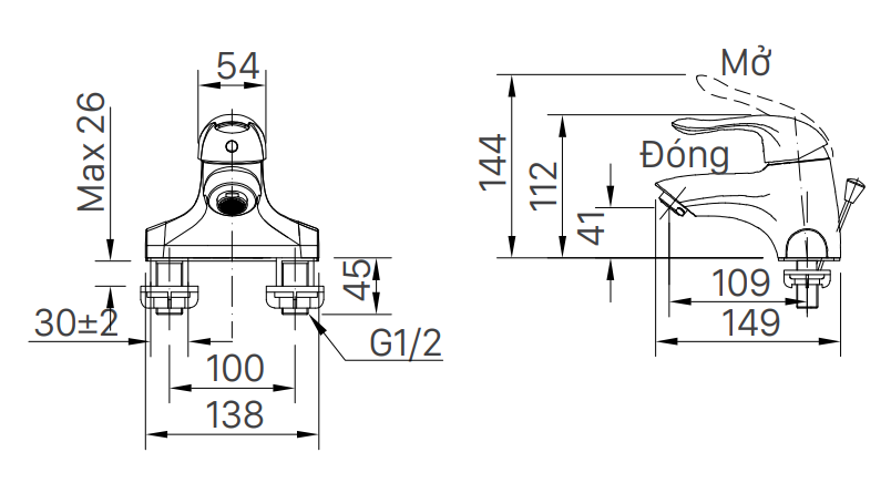Bộ kết hợp sen âm tường G series dáng vuông - 2 đường nước