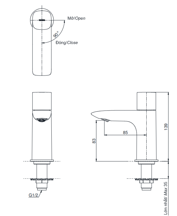 Vòi chậu nước lạnh GA Series , (Không bao gồm bộ xả và ống thải chữ P)