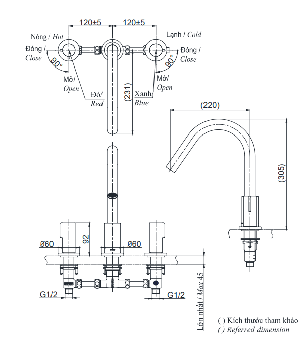 Vòi xả bồn nóng lạnh GF (3 lỗ)