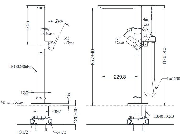 Vòi xả bồn nóng lạnh kèm sen tắm GR (loại đặt sàn) (kèm đế)